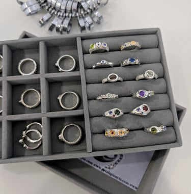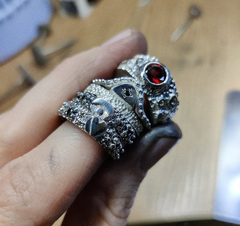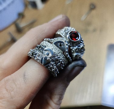 Dažniausiai kuriu įkvėpta aplinkos, jausmų ar mus supančių istorijų. O kartais didžiausias įkvėpimas man yra tiesiog grožis - metalo formos, faktūros, organiškumas ir įvairių akmenų dermė. Savo juvelyrinius kūrinius nuo pradžių iki galo kuriu ir gaminu pati. Mano galerijoje rasite darbus, kurie jau yra sukurti ir pagaminti, didelė dalis iš jų - vienetiniai. Dirbu su auksu, sidabru, brangakmeniais ir pusbrangiais akmenimis. Taip pat kuriu vestuvinius ir sužadėtuvių žiedus.