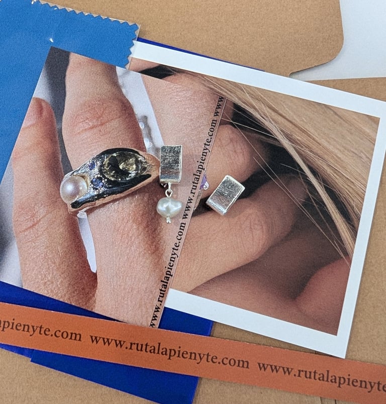 Esu juvelyrė Rūta. Kuriu papuošalus, kuriuose susitinka menas, forma ir jausmas. Tradiciškai meno objektai būna kabinami ant sienos ar statomi lentynose, į juos smagu pažiūrėti, tačiau labiausiai mane žavi mintis, jog papuošalas yra mini meno kūrinys/objektas, kurį žmogus kasdien dėvi ant savo kūno. Papuošalai tampa neatsiejama jūsų kasdienybės dalimi: juose apsigyvena jūsų istorija, prisiminimai ir svarbiausios akimirkos. Todėl man labai svarbu, kad kūriniai būtų ilgaamžiai, kokybiški ir atspindintys jūsų asmenybę.